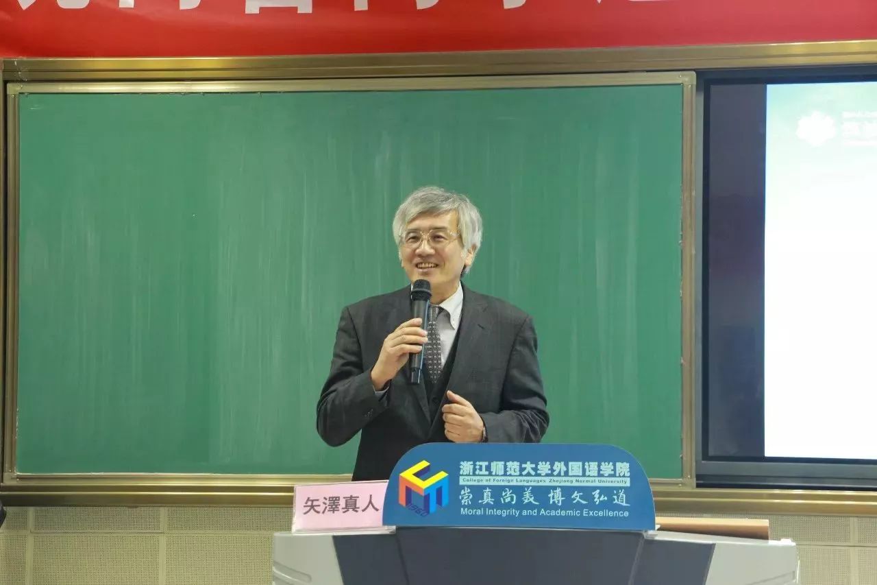 11月24日晚上,日本著名语言学家、日语语法学家,日本筑波大学博士生导师矢泽真人教授应邀为我院师生作了题为“日本語の若者言葉と日本語の変化”(日语中的年轻人用语与日语的嬗变)的讲座。此次讲座由日语系主任徐微洁主持,日语系全体师生及外院其他专业师生聆听了讲座。
