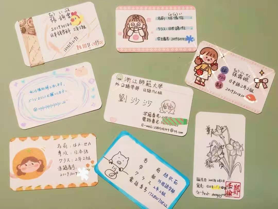 在我们欣赏同学们制作的精美“名刺”的同时,那份跃然于“名刺”当中的元气是否有感染到你呢?希望通过此次“名刺”的制作与交换活动,大家能够对日本的社交礼仪文化有更进一步的了解与向往哦!