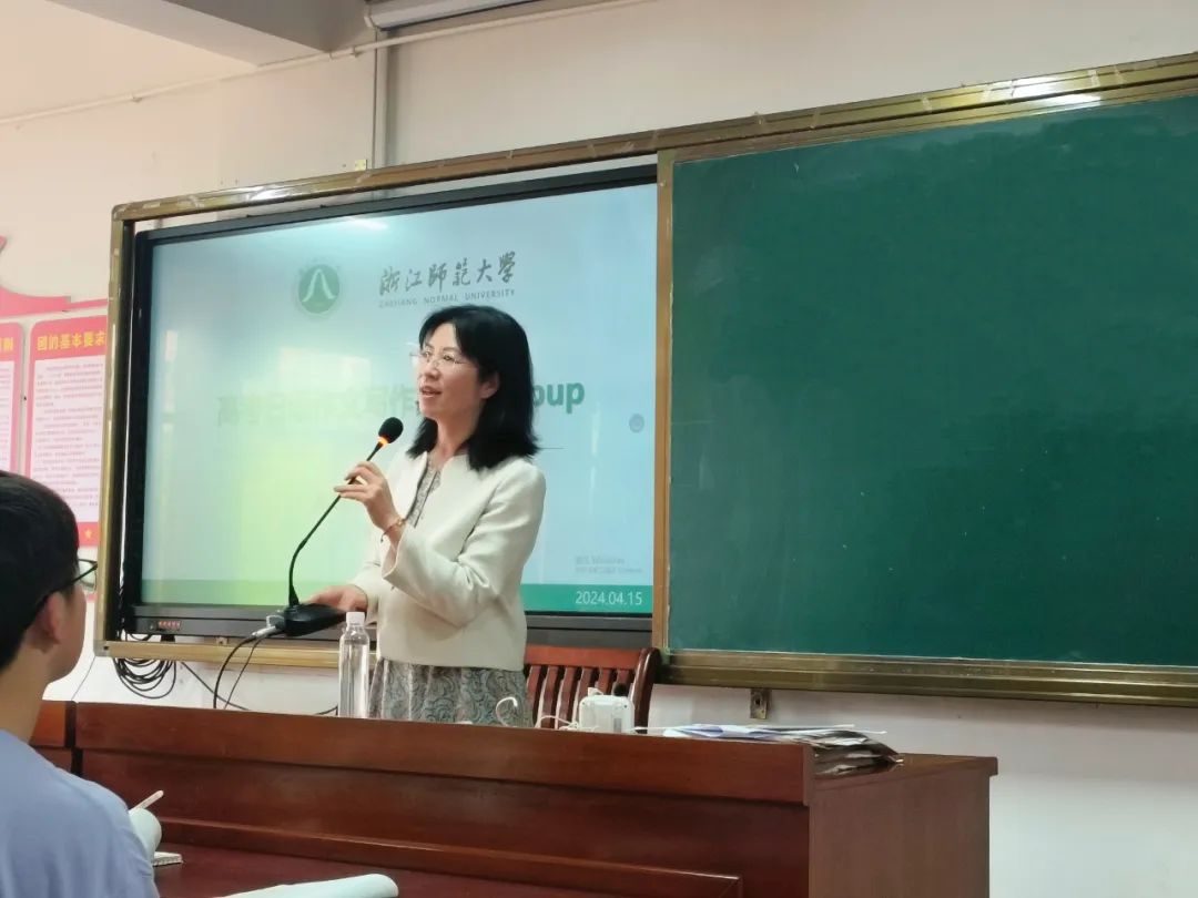 首先由徐微洁教授为该校师生就“如何提升高考日语作文写作能力”展开主题讲座。徐教授围绕高考日语作文概观、评分标准、注意点及常见问题、提分技巧、教学流程、作文示例等六个方面为建华中学师生进行了详尽的讲解。
