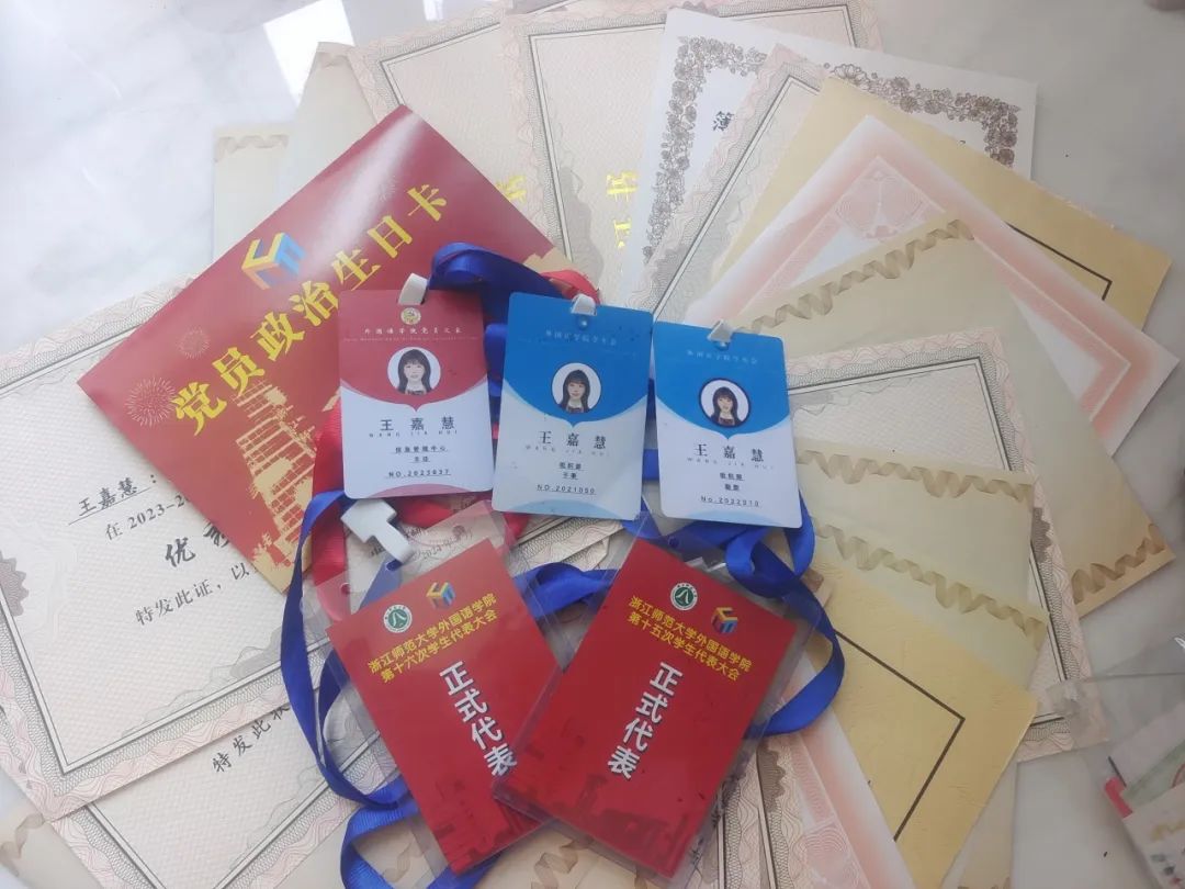 王嘉慧,浙江师范大学外国语学院日语专业2021级2班学生,中共党员,曾任班级团支书、班级党代表、院党员之家信息管理中心主任、日语法语本科生党支部纪检委员。在校期间曾获浙江省日剧PLAY大赛二等奖(2次),获校社会工作优秀学金(2次)、凯越奖学金”,获评校优秀学生干部(2次)、校优秀班级党代表、浙江师范大学外国语学院优秀毕业生。她积极参与各类比赛,例如挑战杯、大学生职业规划比赛、主题党日活动设计大赛等,取得良好成绩。现成功考研至浙江师范大学马克思主义理论专业。