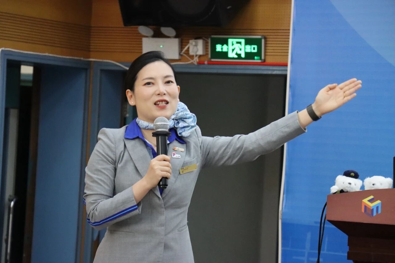 在专题讲座环节,全日空航空公司中国籍空乘张怡女士围绕“商务礼仪与职业形象”,从仪容仪表、行为举止等基础要素切入,系统阐述了如何塑造专业、亲和的第一印象。她特别指出,“微笑”作为世界通用语言,具有跨越文化的强大感染力,并现场演示了专业的服务细节,如在向客户指示物品时,视线应自然由客户移至物品,再回到客户,以展现服务的严谨与温度。在互动环节中,她邀请同学们参与场景模拟和礼仪实践,帮助大家在亲身体验中深化理解。此外,她还结合日本企业文化,分享了跨文化职场中的沟通智慧,鼓励同学们学会换位思考,以宽容平和的心态应对挑战,为未来职业发展筑牢根基。